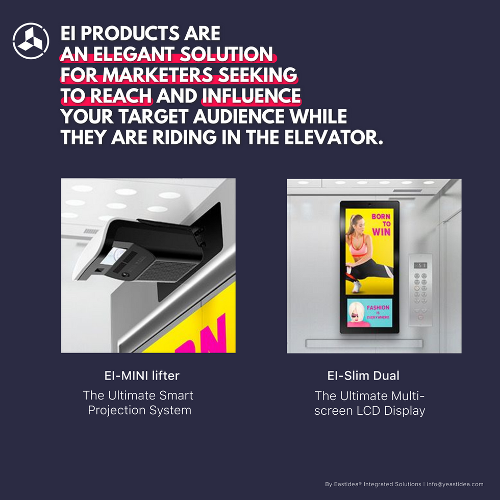 Ei products are an elegant solution for marketers seeking to reach and influence your target audience while they are riding in the elevator.